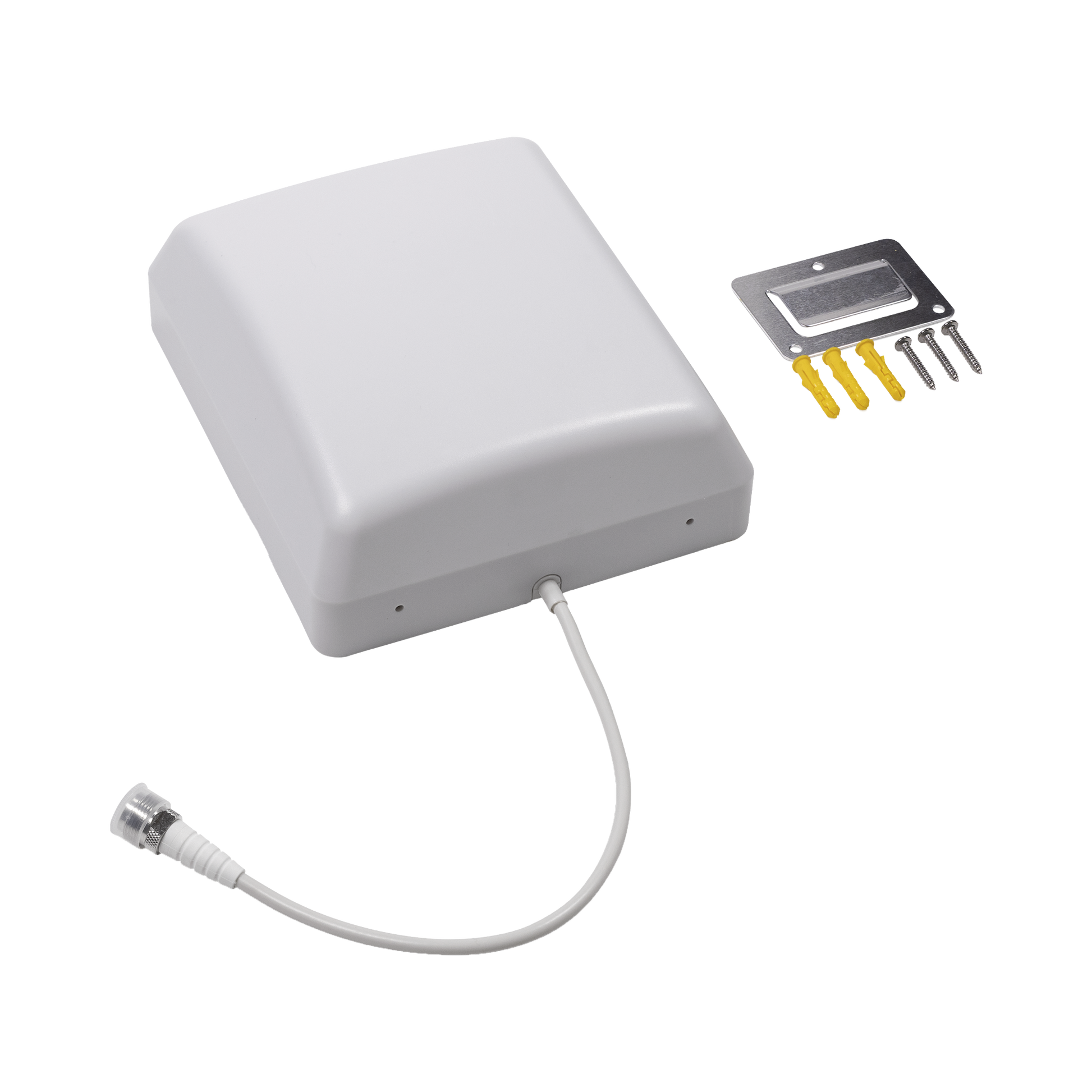 Antena panel multibanda de montaje en pared. 600-4000 MHz, 50 Ohm. Especial para amplificadores de señal y dispositivos celulares 4G, 3G y 2G .