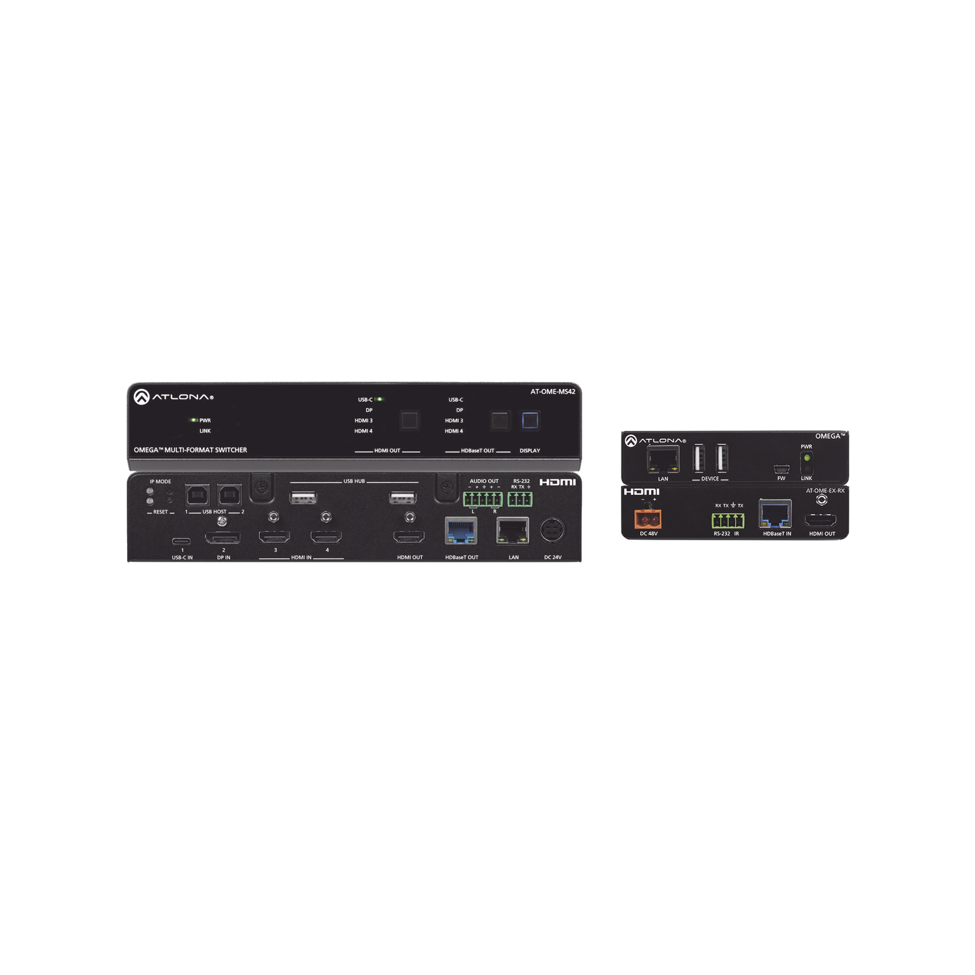 OMEGA 4X2 4K/UHD MULTIFORMAT MATRIX SWITCHER TX/RX KIT ; WITH HDMI ; USB-C ; DISPLA
