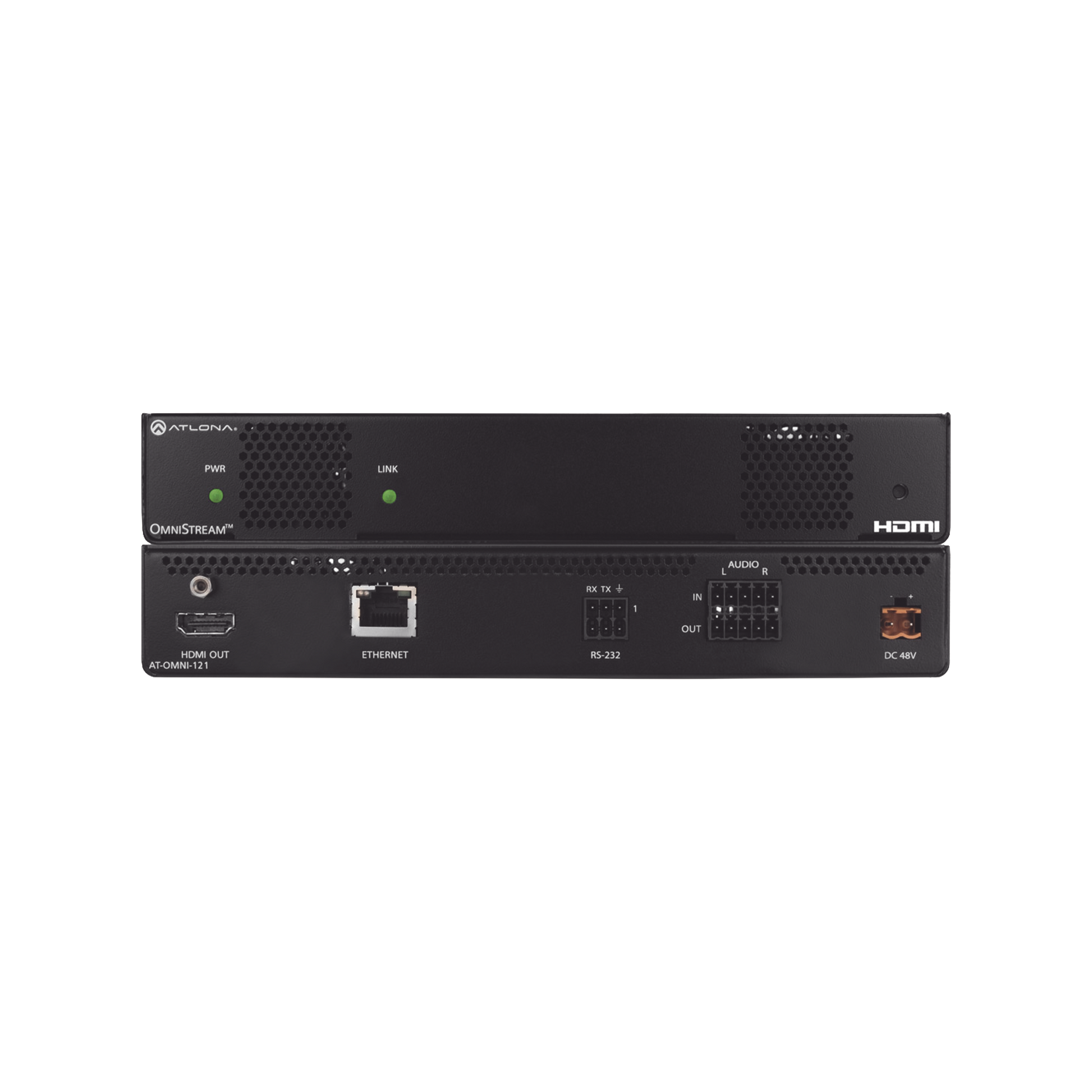 El Atlona OmniStream™ 121 (AT-OMNI-121) es un decodificador AV en red de un solo canal para salida HDMI/HDCP 2.2 que admite resoluciones de hasta UHD a 60 Hz y HDR (alto rango dinámico), además de incrustación y desincrustación de audio, y transferencia de control RS-232 o IR. Es parte de la serie OmniStream Pro, diseñada para una distribución flexible y de alto rendimiento de AV a través de conmutadores Gigabit Ethernet estándar disponibles en el mercado en aplicaciones audiovisuales comerciales. Cuenta con tecnología avanzada de decodificación de video sin pérdidas visuales VC-2 de alta calidad con motores de optimización de calidad de video seleccionables por el usuario diseñados para imágenes generadas por computadora o contenido de video en movimiento. El Atlona OmniStream 121 logra una latencia de subtrama extremadamente baja cuando se combina con codificadores OmniStream AV. Este decodificador de un solo canal está alojado en un gabinete de rack de ancho medio con flujo de aire de adelante hacia atrás, y es ideal para instalaciones compactas de alta densidad en instalaciones distribuidas de múltiples pantallas.
