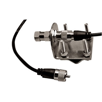 Montaje para espejo de antenas CB de 3/8", 24 Hilos, Cuenta con 5.5 metros de cable RG58 y conector UHF Macho.