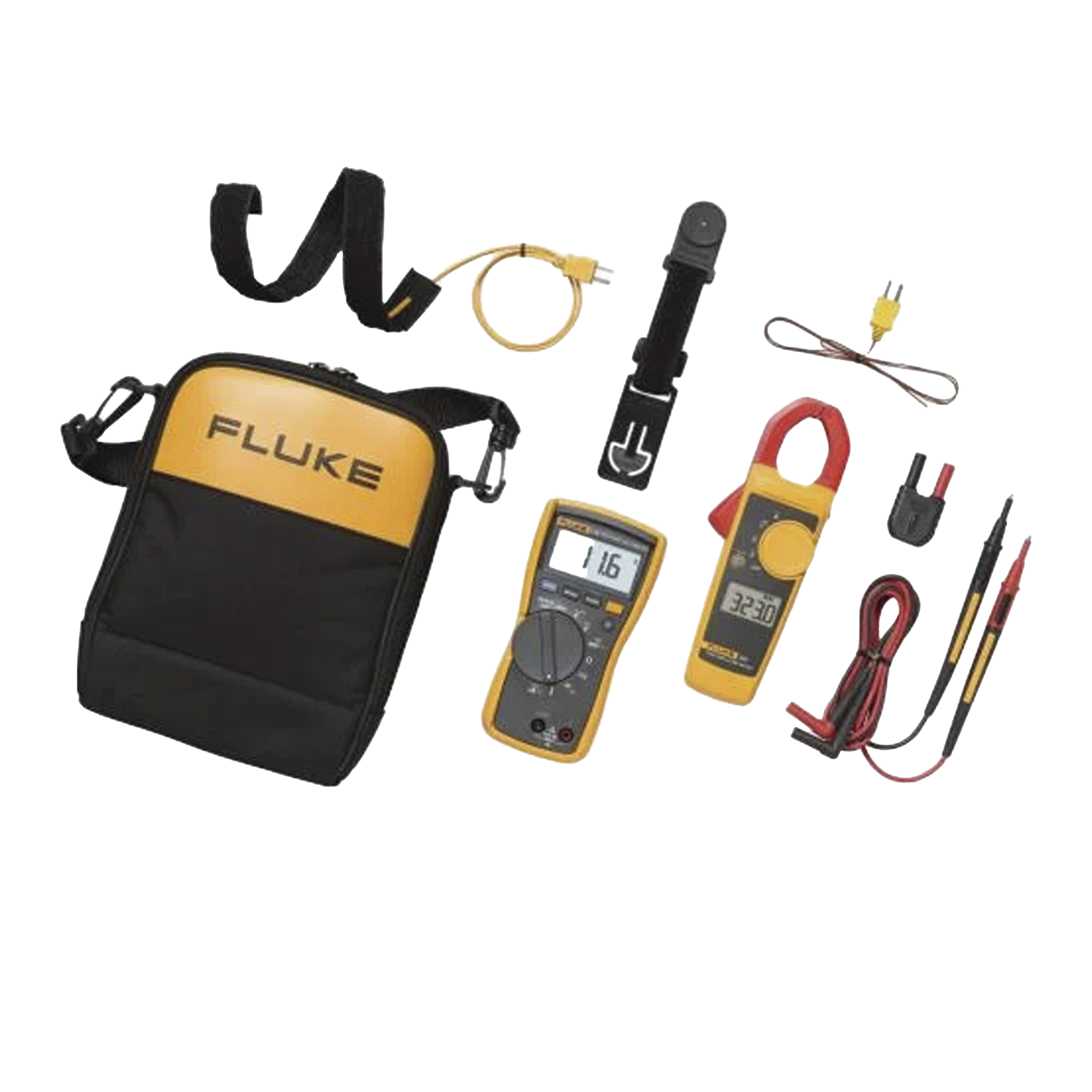 Kit combinado HVAC Fluke 116/323 HVAC, incluye: Multímetro FLUKE-166 y Pinza Amperimétrica FLUKE-323, Puntas de Prueba TL175, Soporte Magnético TPak ToolPak, Pinza termocupla flexible, Sonda de Temperatura 80BK, Adaptador para termocupla 80AK-A y Estuche de lujo con correa para hombro.