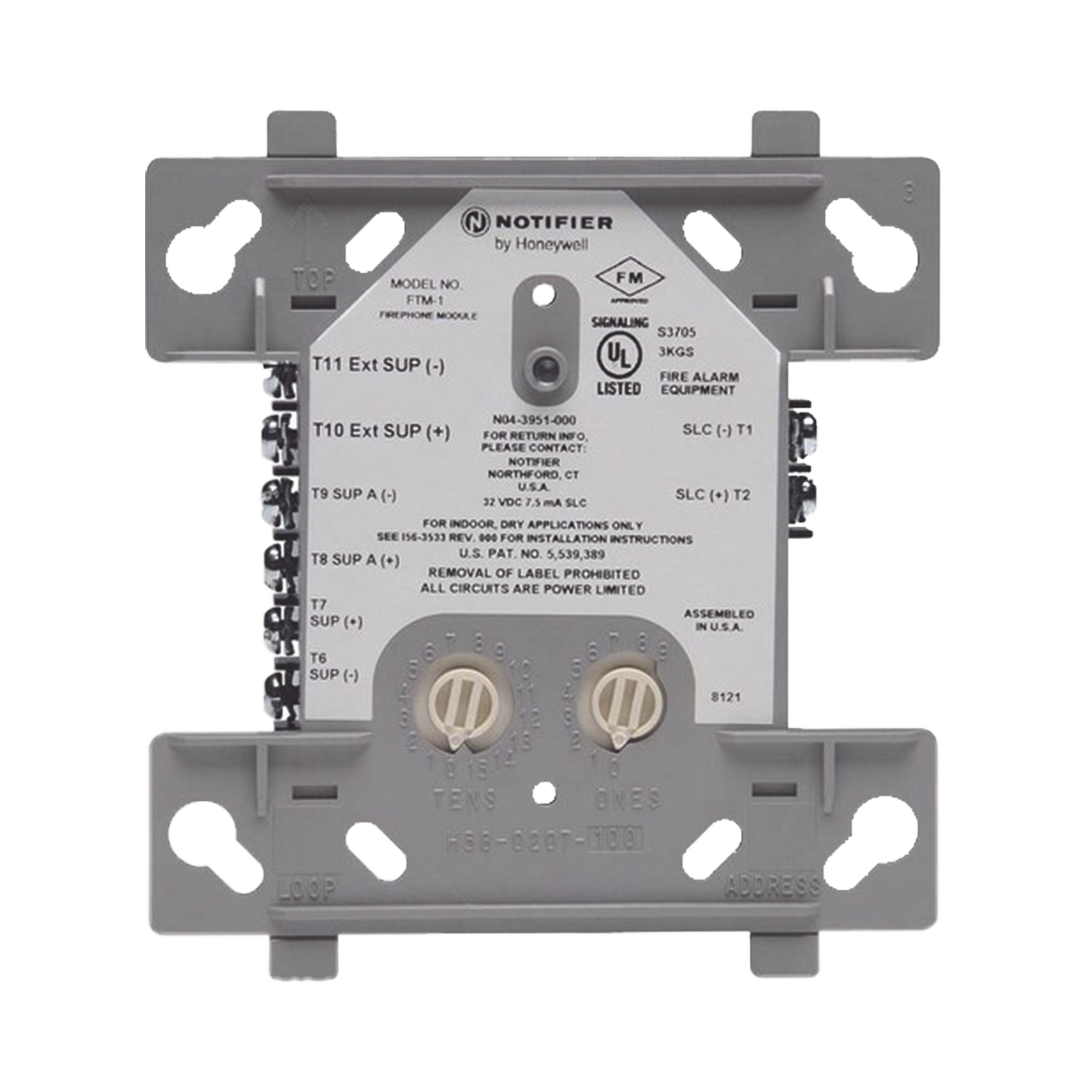El módulo de control de teléfono de incendios direccionable FTM-1 brinda a los paneles de control NFS-640, NFS2-640, NFS-3030, NFS2-3030 de NOTIFIER la capacidad de monitorear y controlar un circuito de hasta dos teléfonos de bomberos. El FTM-1 tiene la capacidad de diferenciar entre condiciones normales, descolgadas y con problemas.