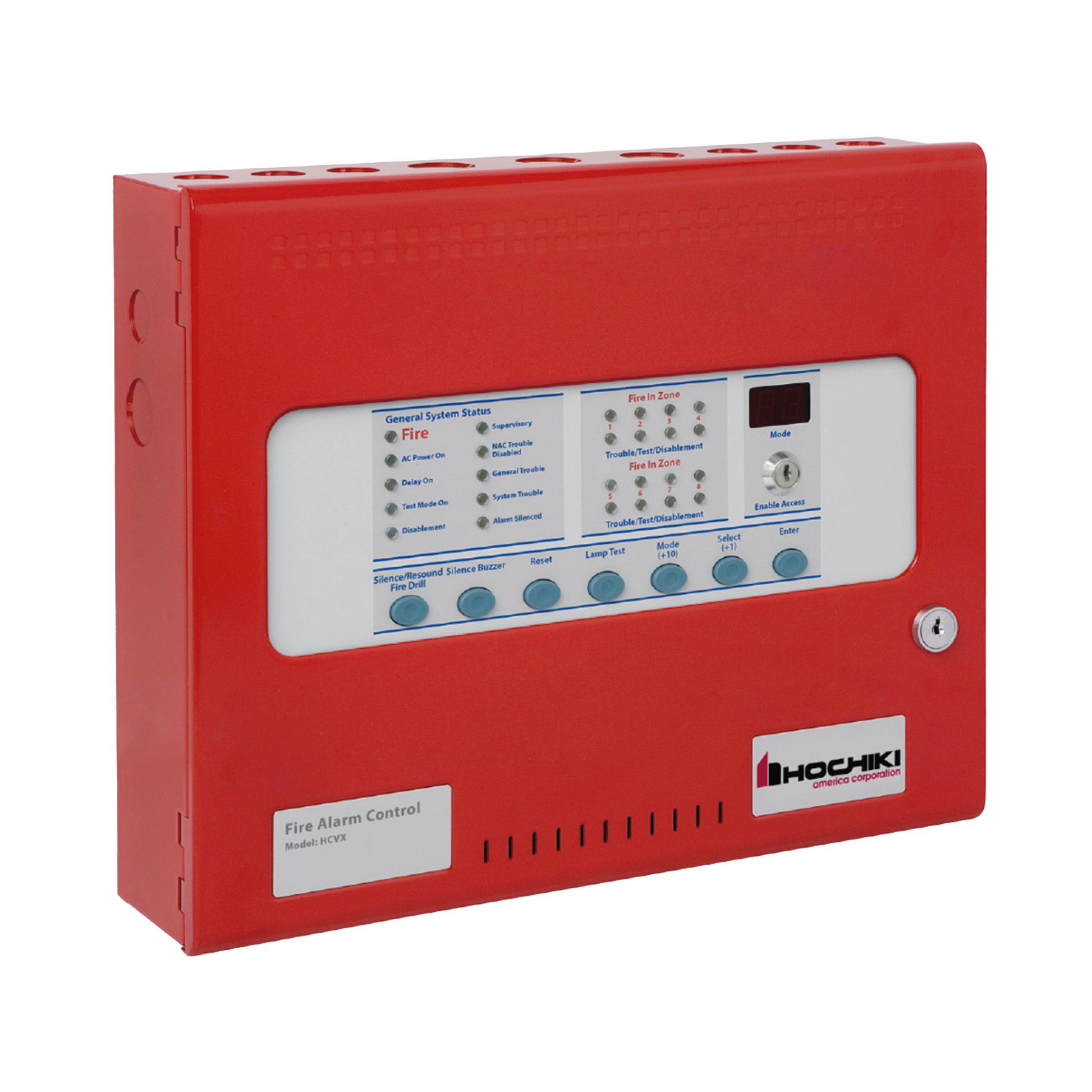 Los bajos requisitos de energía de respaldo y las baterías pequeñas rentables, permiten que el panel se monte en un gabinete pequeño y discreto que está disponible en color rojo estándar. Un método de programación simple que usa solo 3 botones del panel frontal permite establecer y revisar una extensa lista de opciones de configuración.