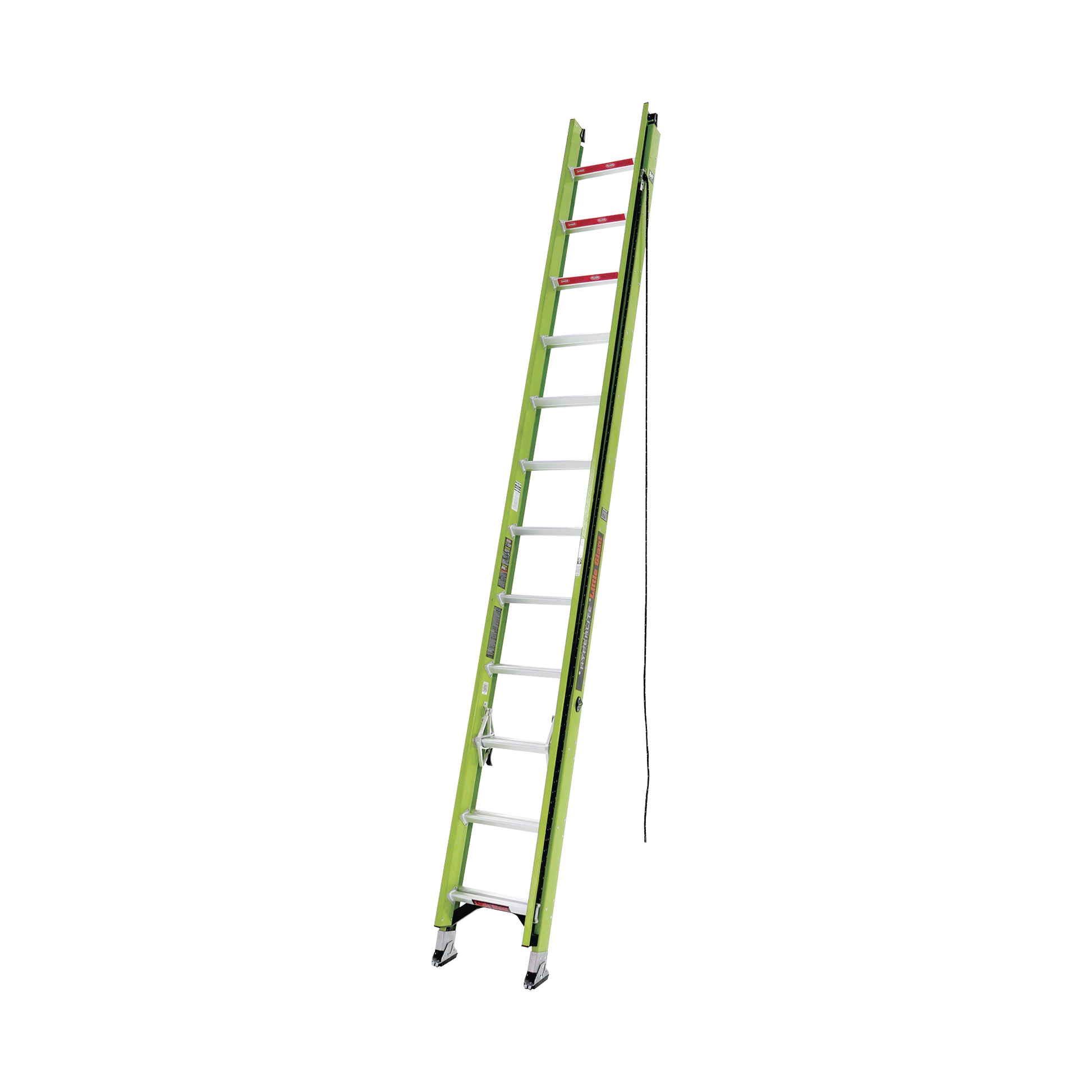 El riel verde hi-viz de Little Giant es uno de los tonos de color más fáciles de detectar para el ojo humano. ¿Por qué una escalera debe ser hi-viz? Algunas de las caídas más catastróficas son causadas por personas que caminan o conducen hacia una escalera de extensión en uso.