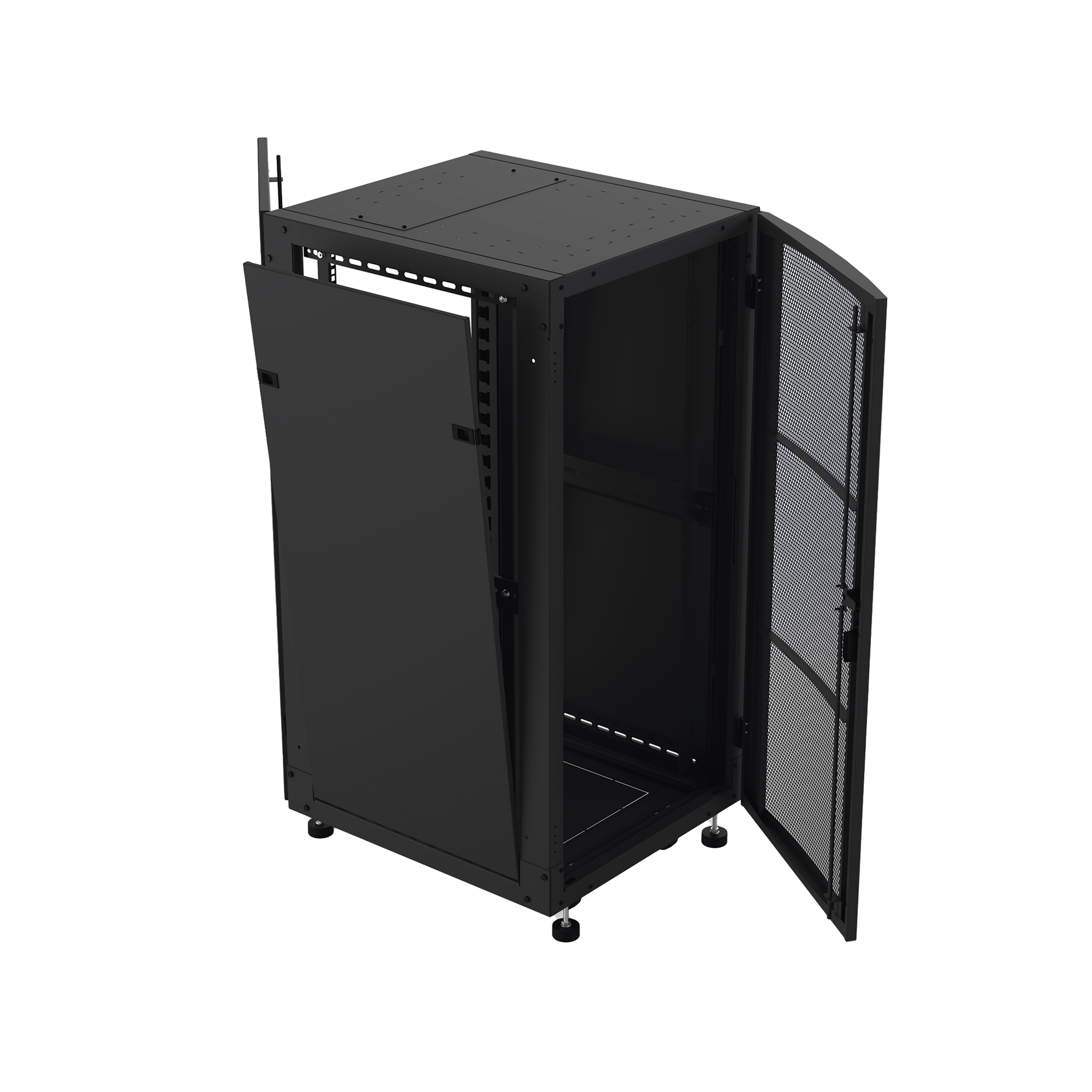 - Cuerpo metálico (tapas laterales, postes racks, puerta frontal y trasera)
