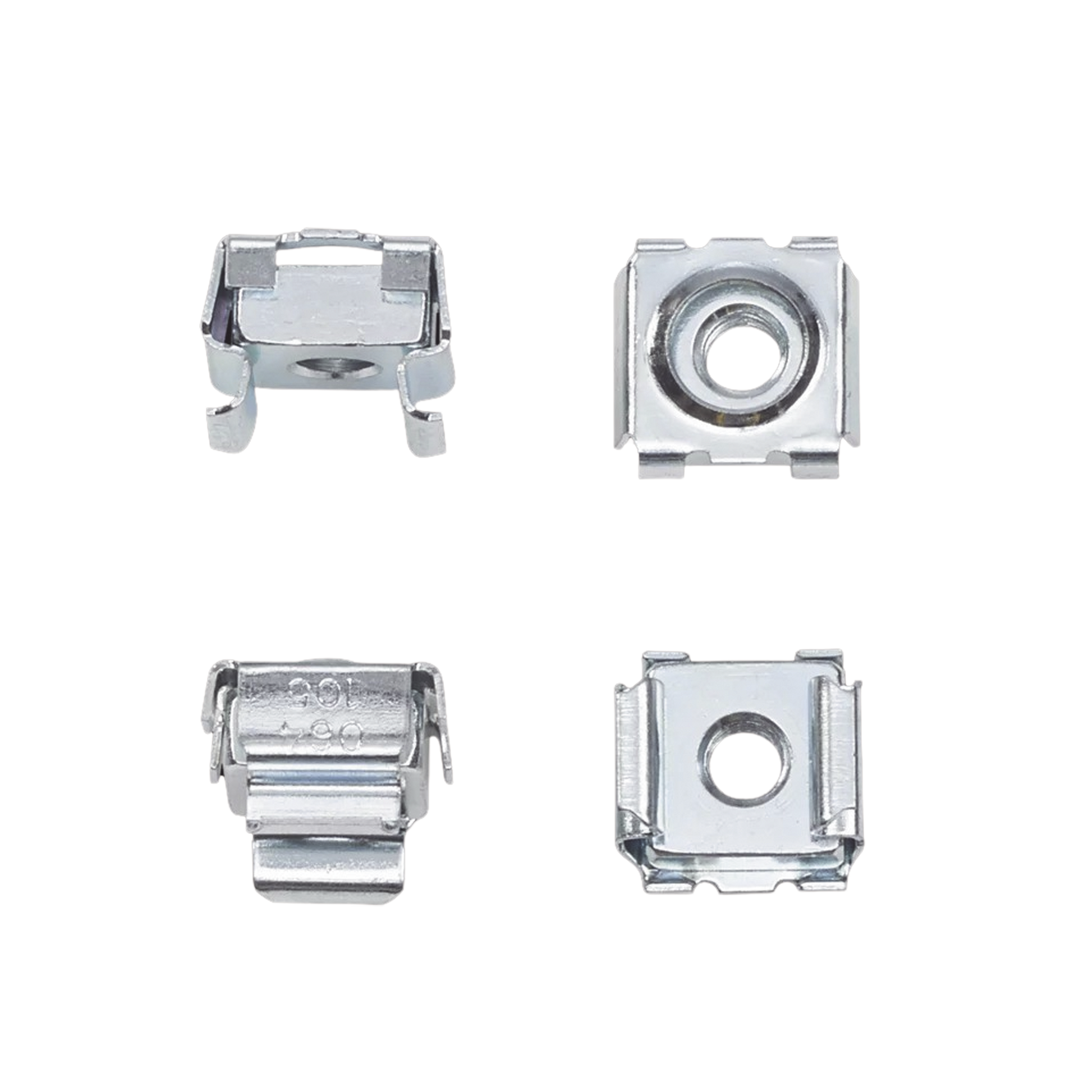 Aumentar cantidad para Kit de 20 Tuercas Enjauladas #10-32, Para Uso en Gabinetes o Racks con Rieles con Orificios Cuadrado, de Acero, Color Plateado