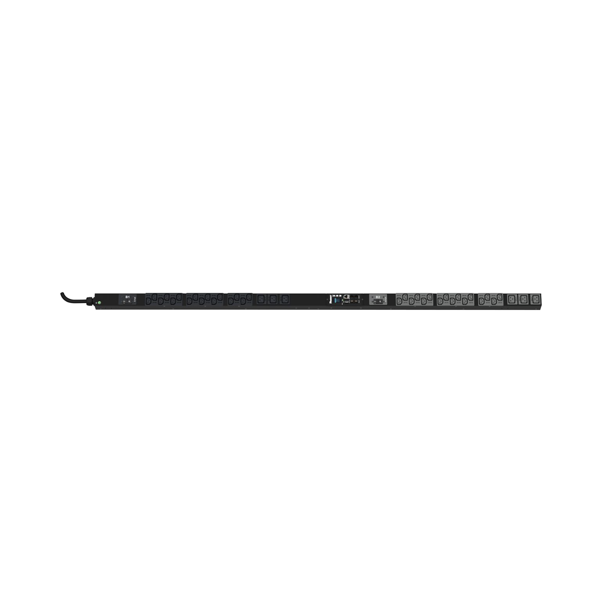 - Medidor para consumo de energía, watt-hora, nivel PDU (kWh), mediciones de potencia nivel PDU (W), mediciones de potencia a nivel Fase de Ingreso (V, A, VA, kWh, pf) y mediciones de corriente a nivel interruptor de circuito.