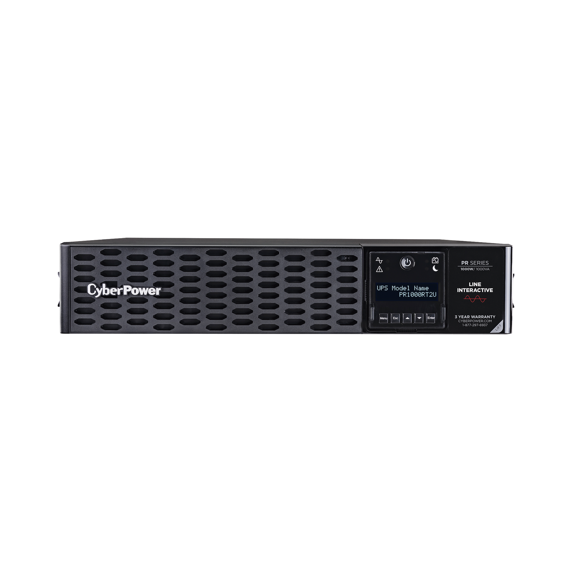 CyberPower PR1000RT2U con diseño de montaje en rack, garantiza protección de respaldo de energía para sistemas de teatro en casa, dispositivos multimedia, equipos de TI, computadoras, estaciones de trabajo, NAS / dispositivos de almacenamiento, dispositivos de telecomunicaciones, dispositivos de red y sistemas de video vigilancia. El UPS adopta la topología de línea interactiva con regulación automática de voltaje (AVR) y ofrece salida de onda senoidal estabilizada para garantizar una alta calidad de potencia.