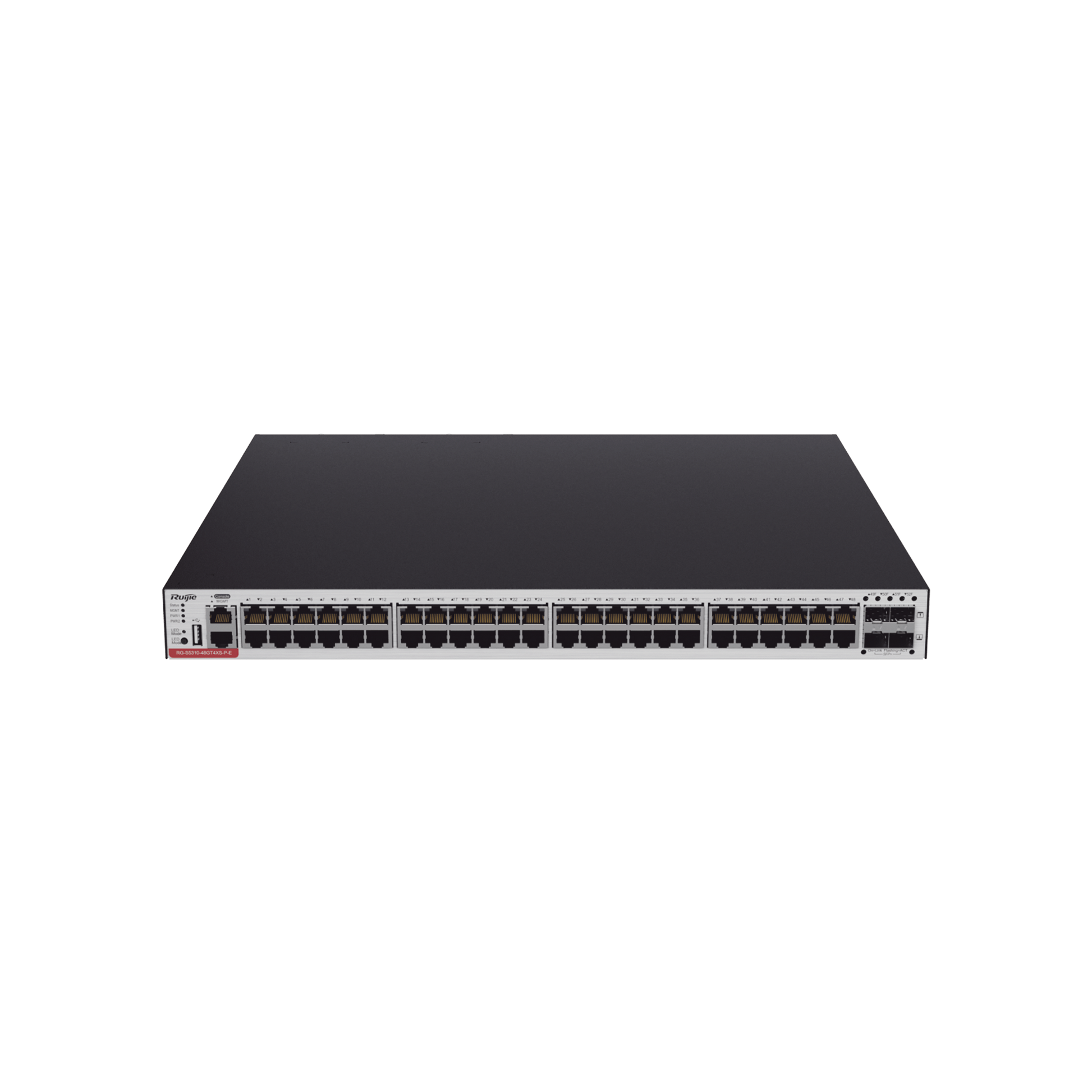 RG-CS83-48GT4XS-PD Switch Administrable Capa 3 PoE con 48 puertos Gigabit 802.3af/at + 4 SFP+ para fibra 10Gb, hasta 1,480 watts, gestión gratuita desde la nube.