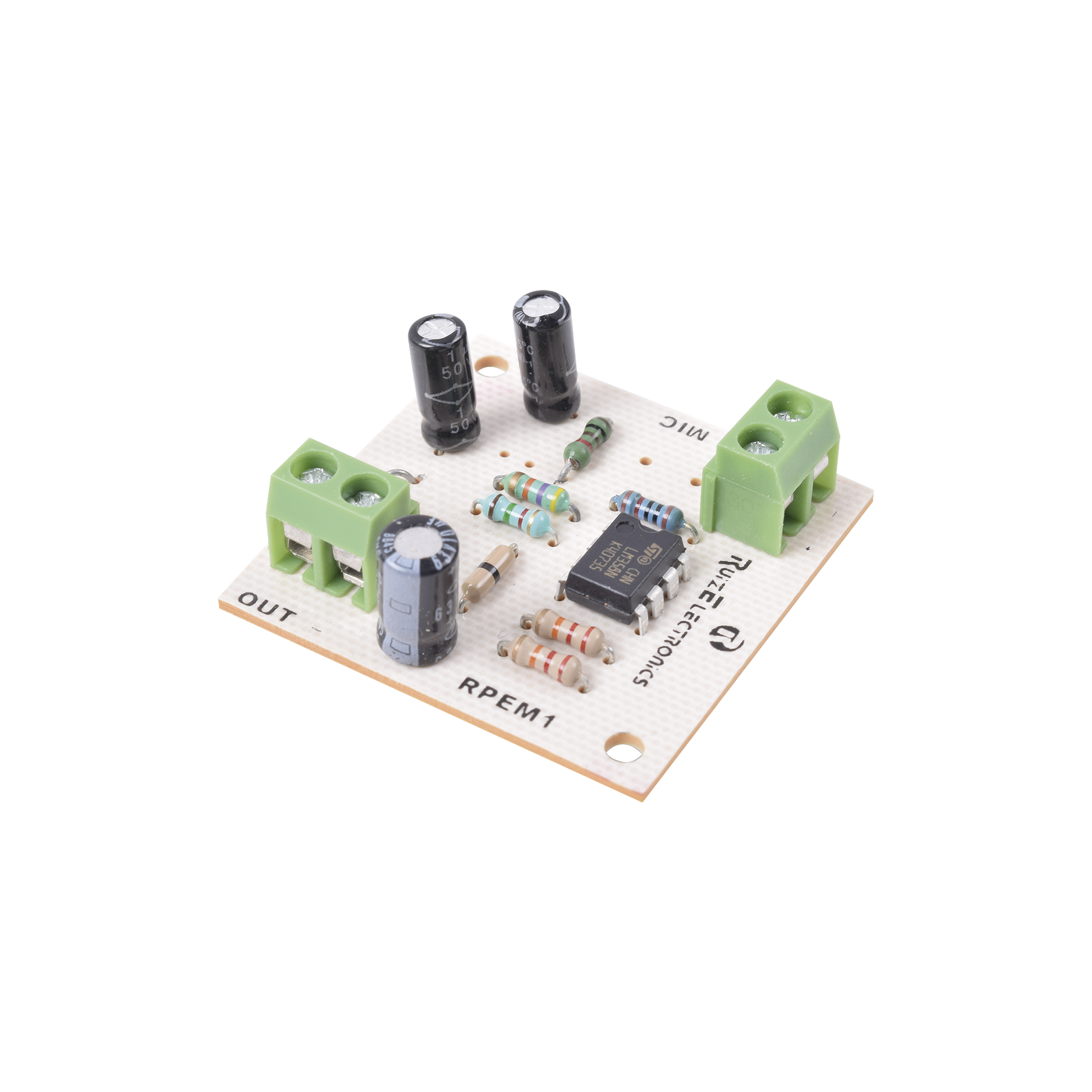 • Entrada: Conexión para microfono electret (el microfono se energiza de la misma tarjeta).