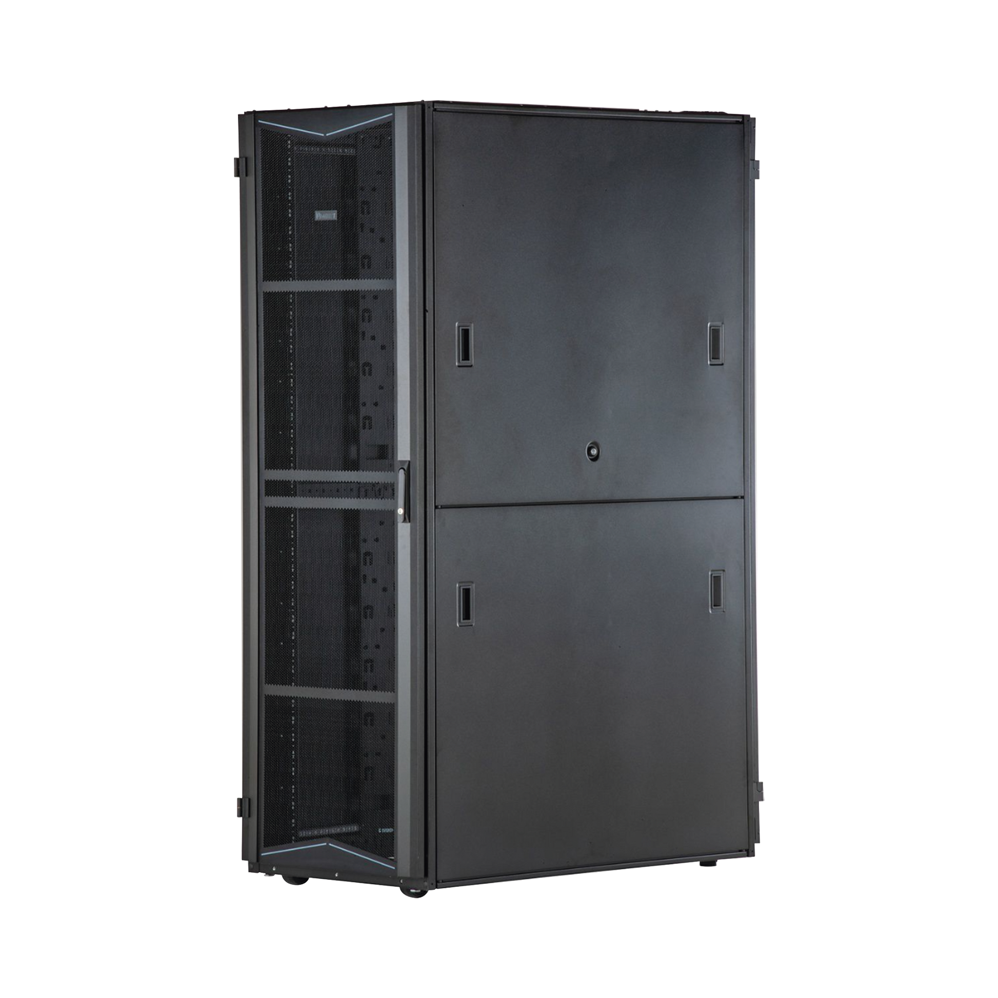 Los gabinetes FlexFusion™ constan de una estructura de acero ensamblada y soldada disponible en anchos de 600 mm, 700 mm y 800 mm, profundidades de 1070 mm y 1200 mm y alturas de 42 RU, 45 RU, 48 RU y 51 RU. Rieles delanteros y traseros totalmente ajustables con tuercas enjauladas. Las opciones disponibles incluyen una puerta delantera con una sola bisagra y puertas traseras con bisagras divididas con un 80% de perforación abierta, paneles laterales divididos horizontalmente, dedos para la gestión de cables, soporte para gestión de cables vertical, soporte de montaje de PDU y ruedas. Todo el gabinete debe esta conectado eléctricamente sin el uso de cables de conexión.
