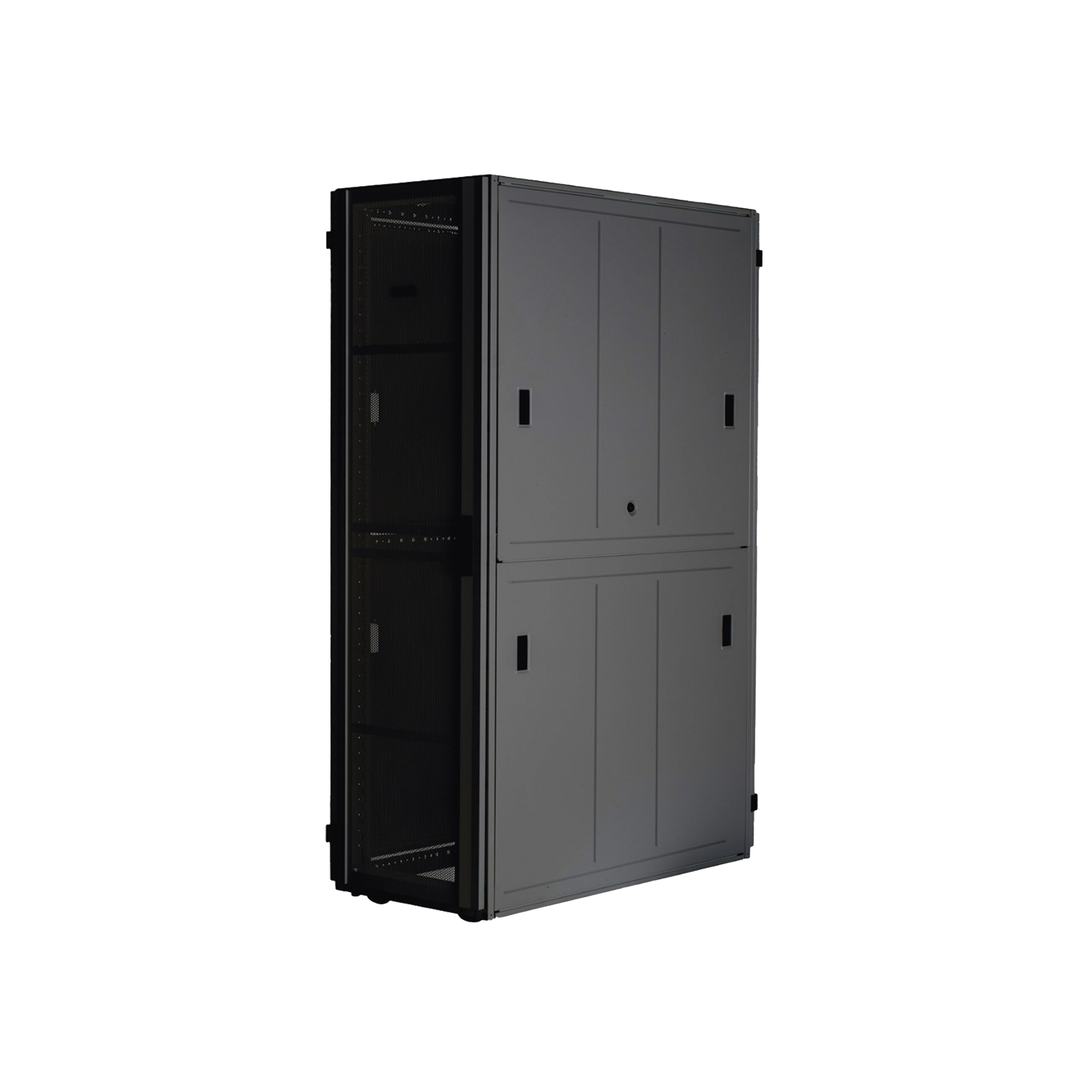 Los gabinetes FlexFusion XGL constan de una estructura de acero soldado y ensamblado disponibles en anchos de 600 mm y 800 mm, profundidades de 1070 mm y 1200 mm y alturas de 42 RU y 48 RU. Incluyen una puerta delantera con una sola bisagra y puertas traseras con bisagras divididas con un 80 % de perforación abierta, paneles laterales con cerradura divididos horizontalmente, 1 juego de soporte de montaje de PDU y ruedas. Rieles delanteros y traseros totalmente ajustables con tuercas enjauladas.