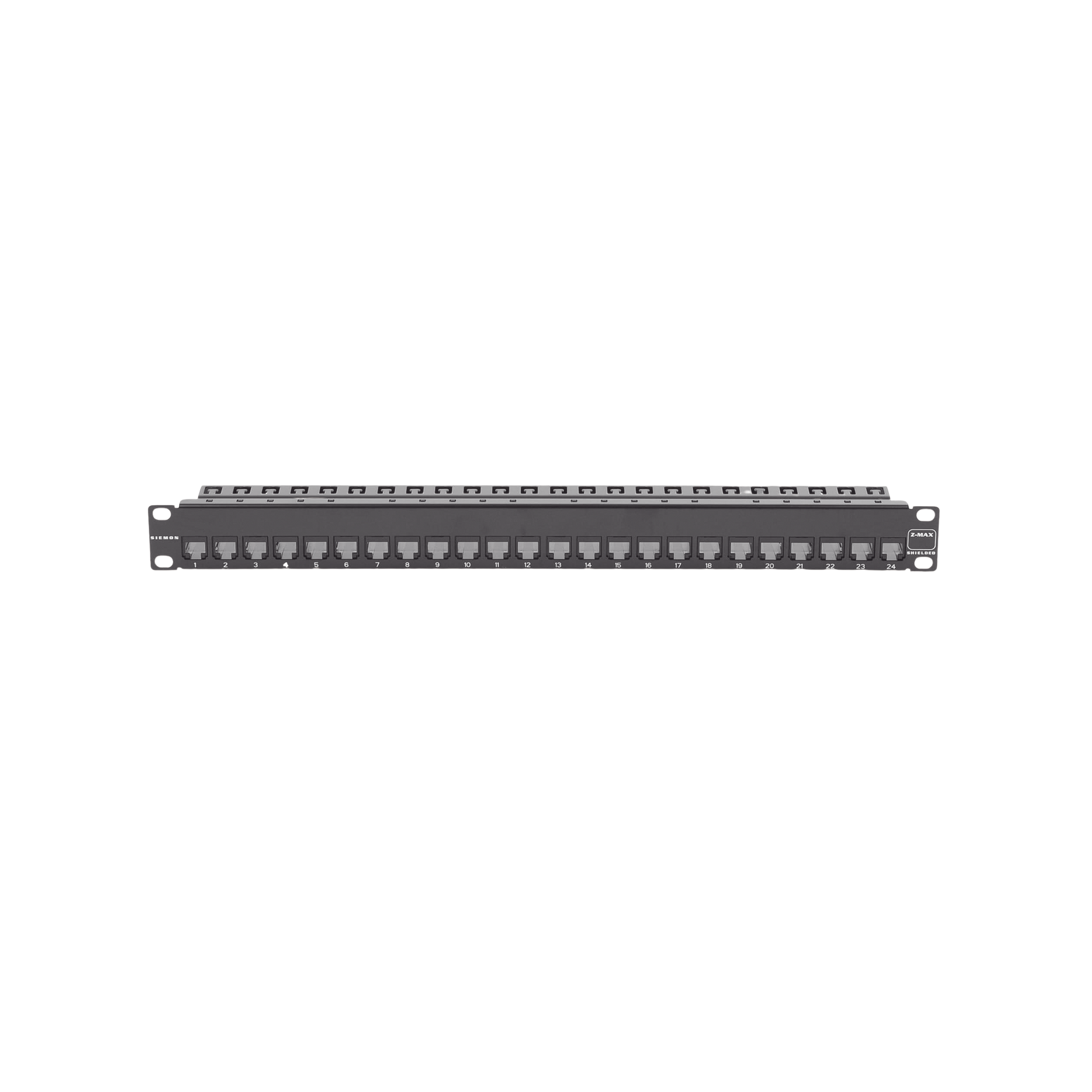 Patch Panel Z-MAX de 24 puertos, Blindado, Precargado con Jacks Categoria 6A, Plano, 1UR